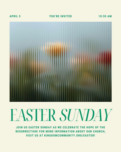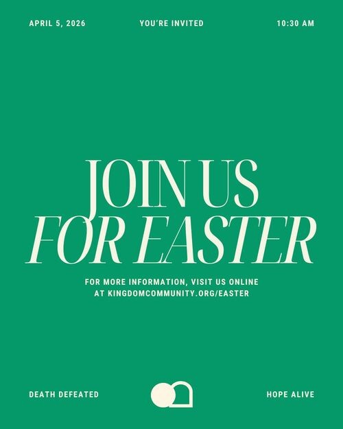 Easter with Kingdom Community Church is coming soon! This Sunday at 10:30! You can learn more about the church at kingdomcommunity.org. Let me know if you're coming. I’d love to sit with you!
